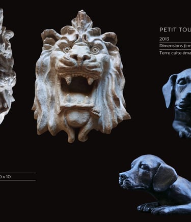 Découvrez les sculptures uniques mêlant textures et matériaux variés.